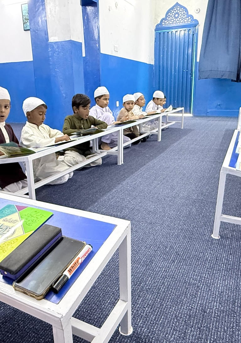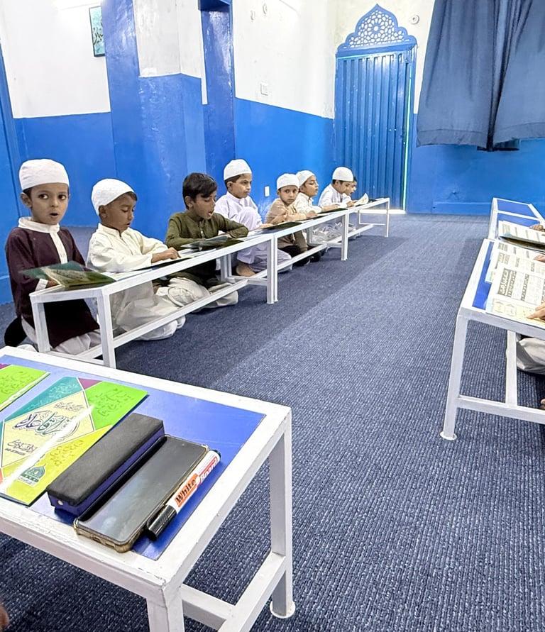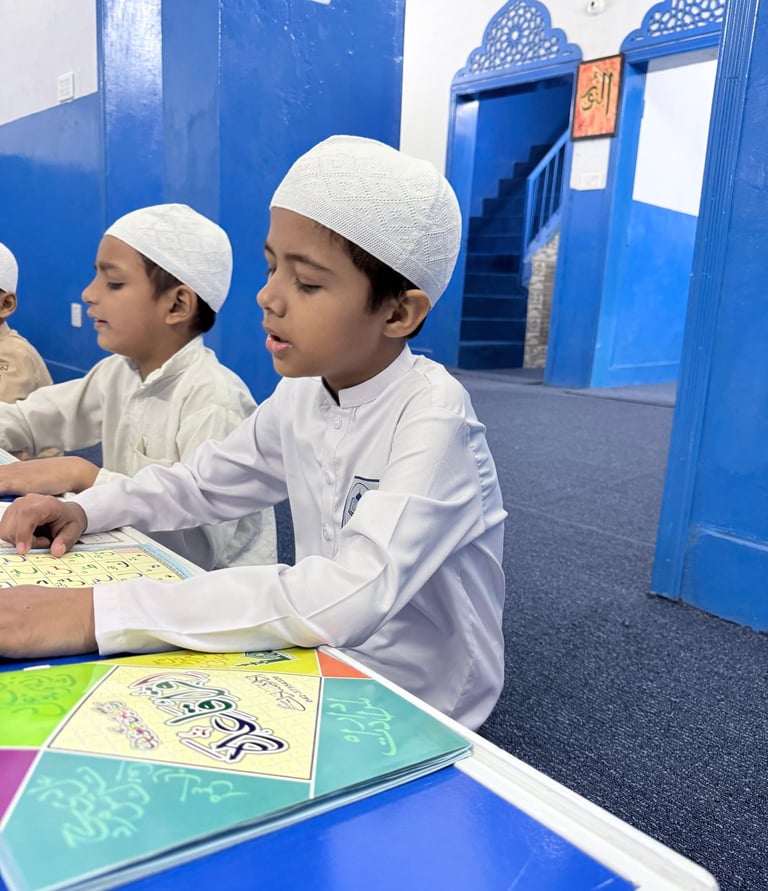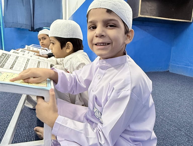 Our Nazra Qur'an Program at Dar ul Quran School is designed to help students read the Holy Qur'an with correct pronunciation, fluency, and Tajweed. We follow a step-by-step teaching method that ensures every child builds a strong foundation in Arabic letters, sounds, and reading rules before moving to full Qur'an recitation.